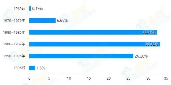 從我們2020年考生的出生年份來看,“80后”(31-40歲)占據報考人數絕對地位。