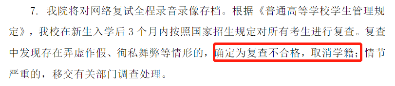 入學(xué)三個(gè)月后,一般院校會(huì)對(duì)所有考生進(jìn)行全面復(fù)查,包括初試和復(fù)試過(guò)程(含提交的所有資格審核及其他材料等),一旦復(fù)查不合格,則會(huì)直接取消入學(xué)資格,情節(jié)嚴(yán)重者會(huì)移交有關(guān)部門處理。