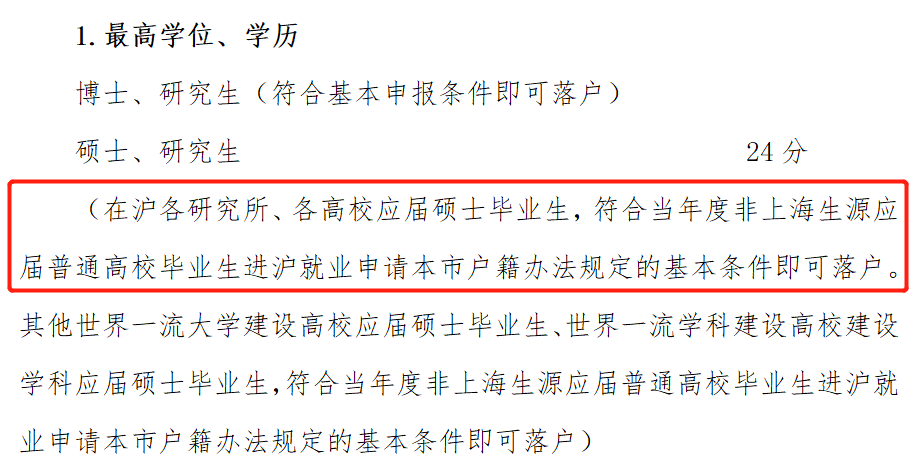 上海也在6月28日公布最新落戶政策,對于在滬高校的應屆碩士畢業生落戶全面放開,畢業可以直接落戶。