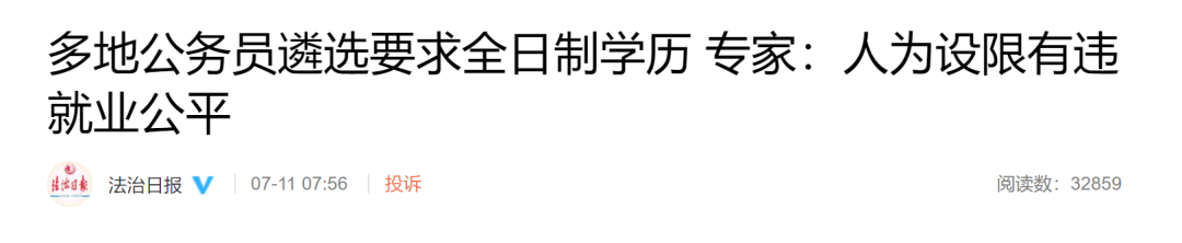 我們不能否認當前社會確實存在非全日制不被認可的情況,比如此前熱議的多地公務員遴選要求全日制學歷,亦或是石家莊沒有將非全日制研究生納入安家補貼范圍內被一紙訴狀告上法庭。