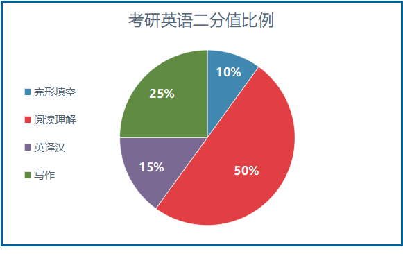 英語(二)試卷分為四大模塊:完形填空(10分)、閱讀理解(50分)、英譯漢(15分)、寫作(25分)。