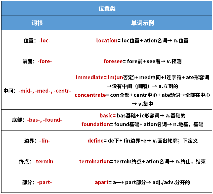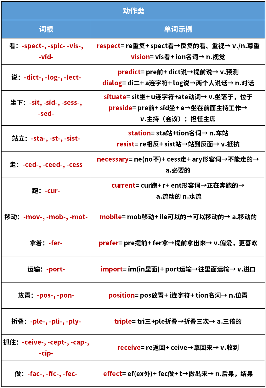 想要學(xué)好詞根詞綴,最有效的方法就是通過用常見的“關(guān)鍵單詞”來作為引導(dǎo)來記憶詞根詞綴。本文羅列了考研英語中最常見的前綴、詞根、后綴,強(qiáng)烈建議各位同學(xué)收藏本文,經(jīng)常查閱、復(fù)習(xí)一下本文中的表格。