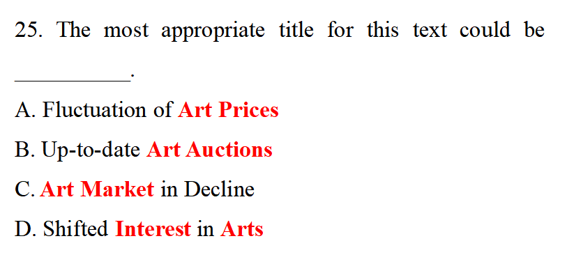step 3: 排除不是art market為對象的選項,排除ABD,只有C的對象為“art market”,且decline為負向詞匯,因此正確答案為C。