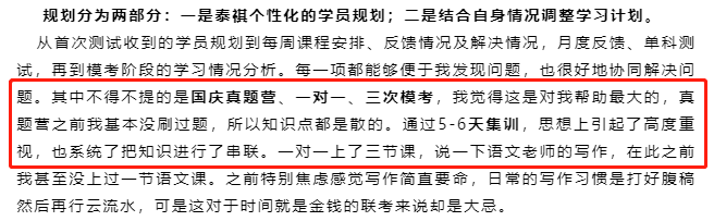 同時,老師也會給同學(xué)提供最后三個月沖刺階段,對于真題的把控和訓(xùn)練節(jié)奏的復(fù)習(xí),幫助同學(xué)有條不紊規(guī)劃后續(xù)計劃。