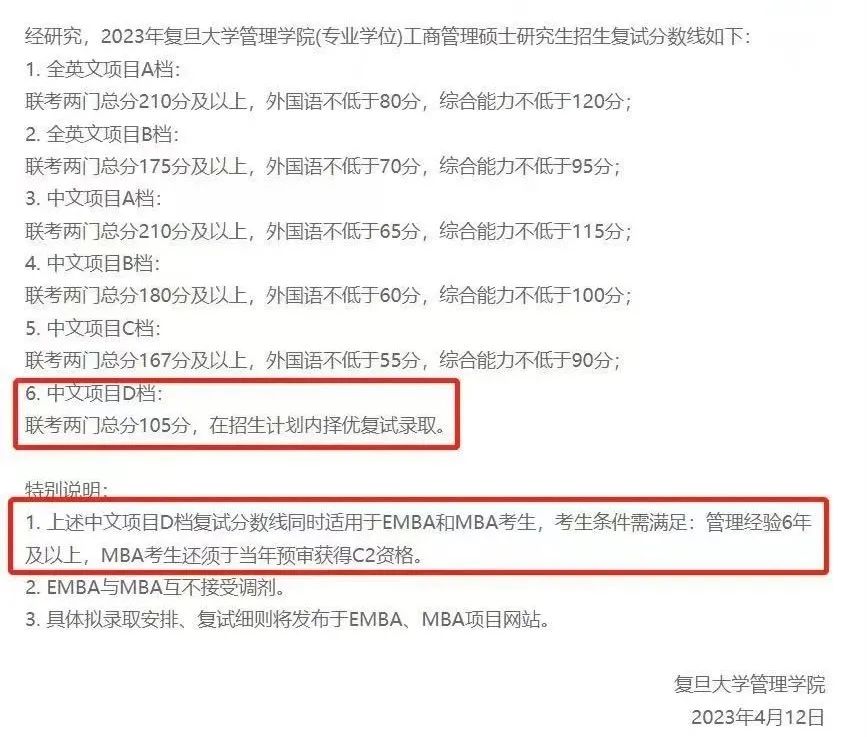 ??比如復旦大學EMBA2023年的復試分數線是105分,遠遠低于國家線。