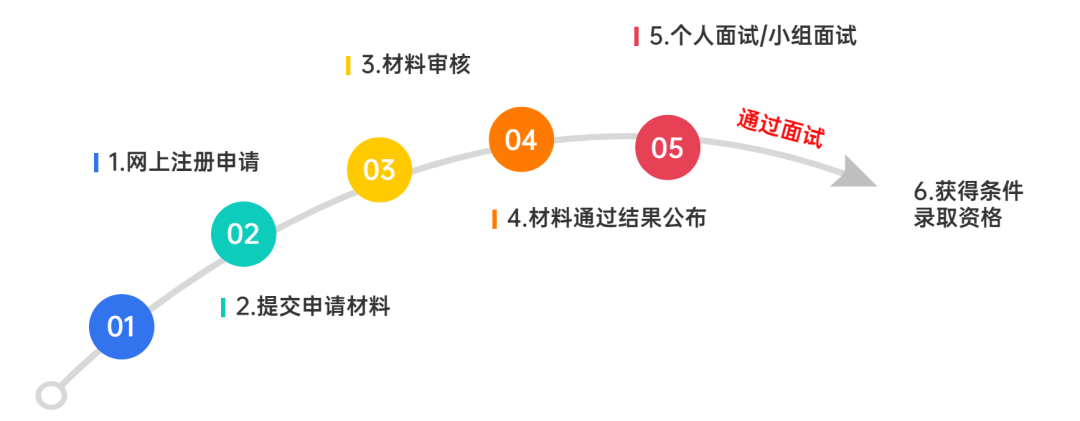 簡而言之,就是先交材料,材料審核通過后,參加面試。
