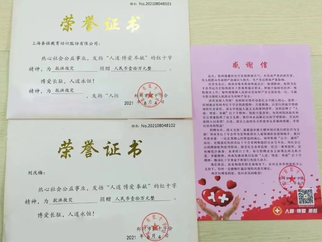 泰祺教育自2002年成立以來,始終踐行“改變人,成就人,讓社會更美好”的企業使命,積極參與參與多項社會公益活動,例如“暖暖公益”、“免費午餐”、為遭遇特大暴雨災害的鄭州捐款等。同時,泰祺作為阿拉善SEE生態會員單位,多次捐助,以支持中國的環保事業,助力中國經濟可持續發展。泰祺以實際行動履行社會責任,為社會更美好盡一份綿薄之力。