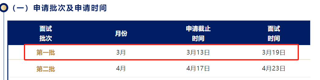 各個院校每年會安排多個批次的提前面試,每個學(xué)生只能選擇一個批次參加。雖然不同批次的考試內(nèi)容相同,但是建議參加提前面試要趕早。