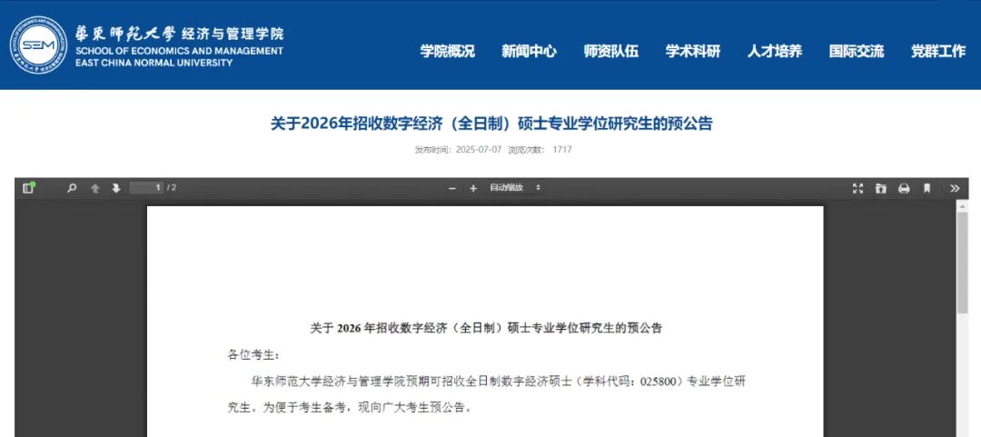 新增院校一般首年比較容易上岸,想考數(shù)字經(jīng)濟(jì)碩士的同學(xué)可以關(guān)注一下這幾個(gè)院校的最新招生簡章發(fā)布。